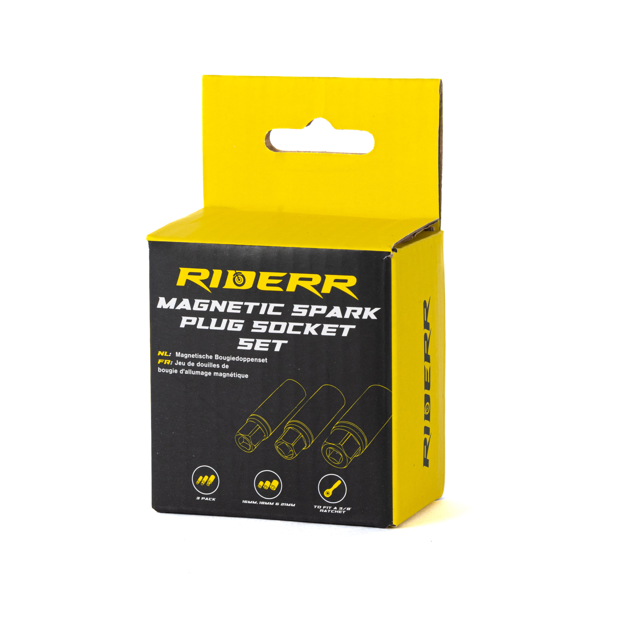Riderr 3pc Magnetic Spark Plug Socket Set – motorcycle maintenance tool set.