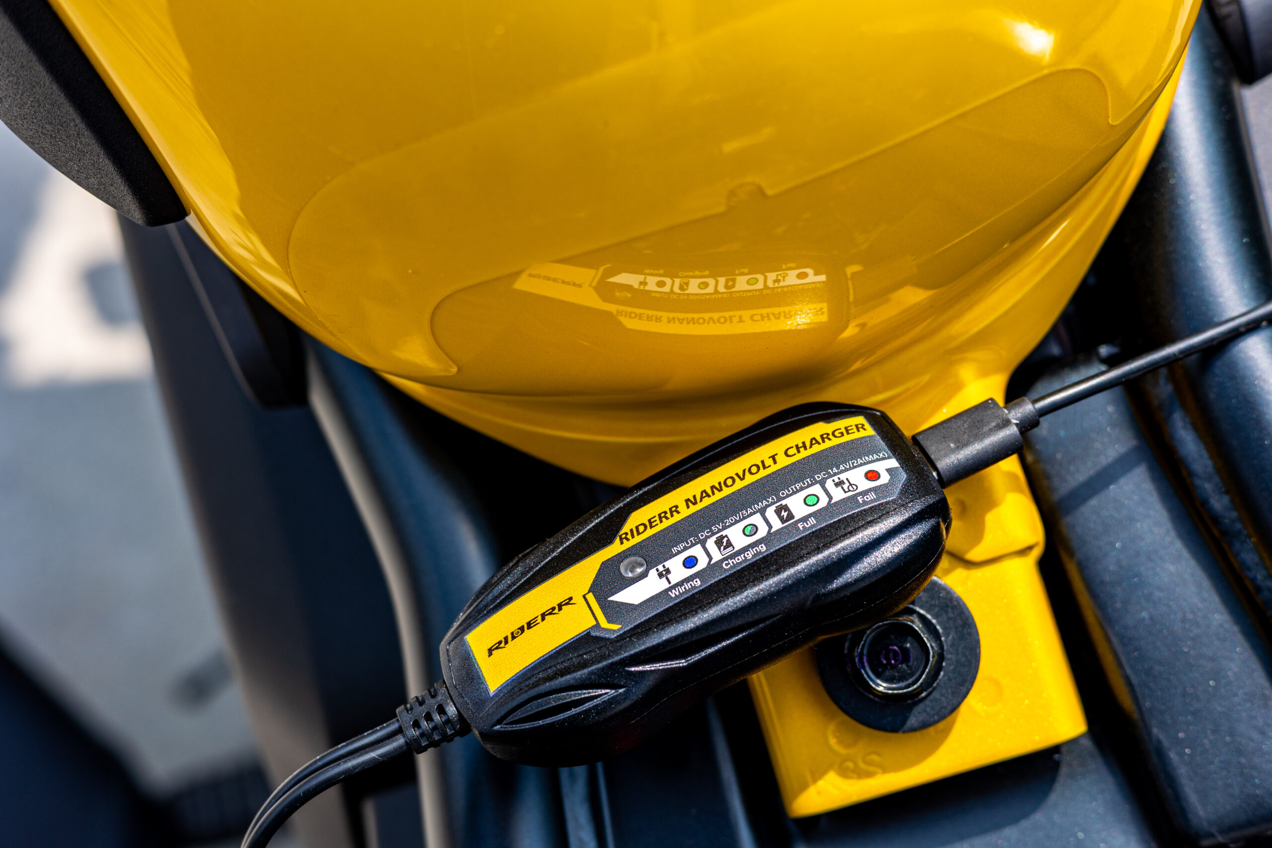 The RIDERR NanoVolt is a sleek & compact, one-way battery charger that lets you easily top up your motorcycle battery using your phone charger or power bank. Universal compatibility with a USB-C connection. The intelligent chip will automatically regulate charging to protect your motorcycle battery from overcharging or damage. Lightweight, intelligent & travel ready – the RIDERR NanoVolt is your go-to solution for emergency top-ups and worry-free riding.