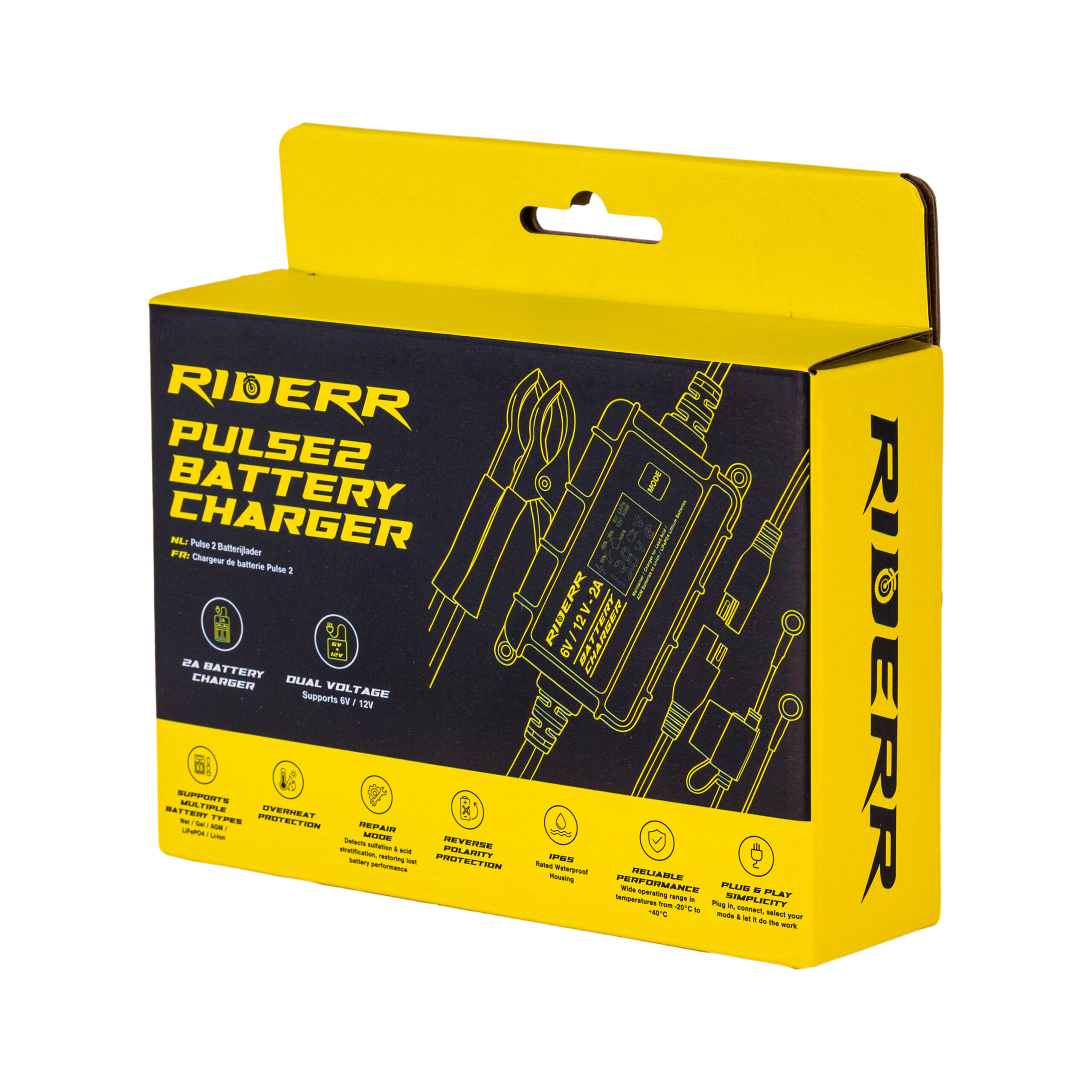 Power, precision and protection – the RIDERR Pulse2 is your ultimate all-in-one solution for charging, maintaining and restoring your battery. Compact yet powerful, this fully automatic smart charger is designed for both 6V & 12V systems, offering unmatched versatility across a wide range of battery types.