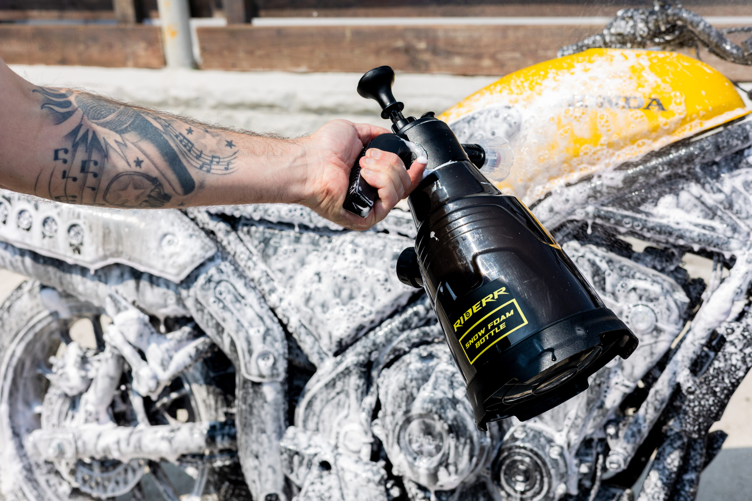 Take your motorcycle cleaning routine to the next level with the RIDERR Snow Foam Bottle. Engineered for convenience and performance, this 2-litre bottle is the perfect companion for applying snow foam with ease. Easily switch between water and foam with the included interchangeable nozzles, enabling you to pre-clean, snow foam, and wash your motorcycle—all with a single bottle.